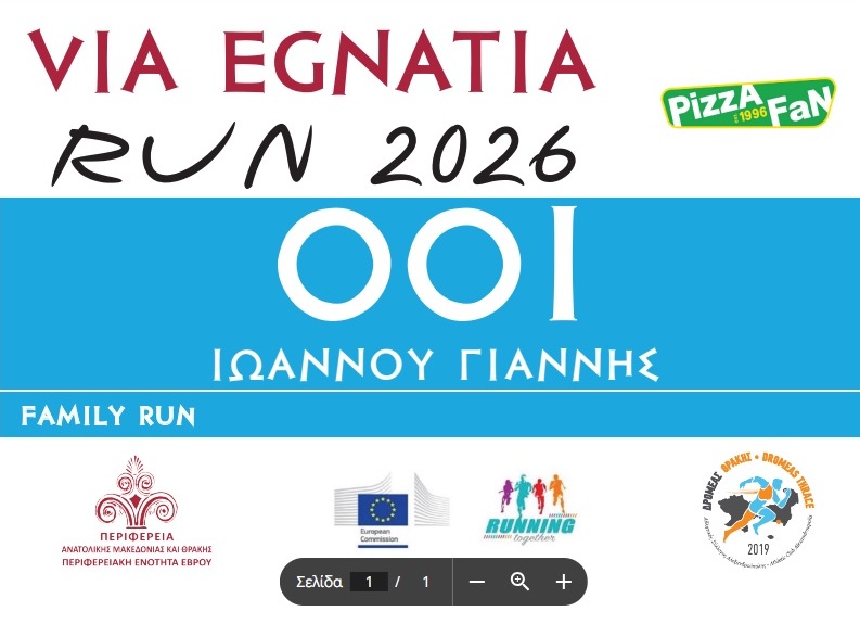 Συνεχίζονται οι εγγραφές για τον αγώνα Via Egnatia Run 2026 for Families, που θα γίνει στην Αλεξανδρούπολη το Σάββατο 14 Μαρτίου 2026