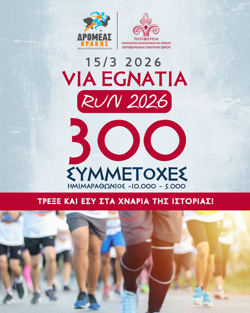 7ος Αγώνας Via Egnatia Run 2026 | Αλεξανδρούπολη, Κυριακή 15 Μαρτίου 2026
